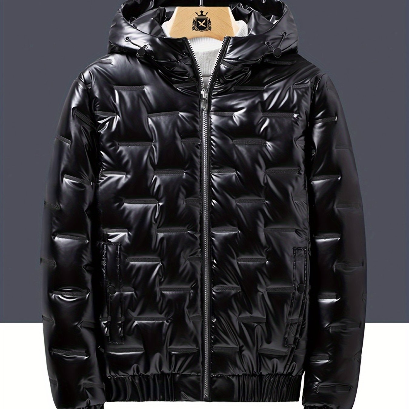 TEMU 남성용 캐주얼 후드 퀼트 재킷, 100% 폴리에스테르 두꺼운 따뜻한 코트, 긴 소매 단색 지퍼, 일상 및 캐주얼 착용을 위한 정규 핏