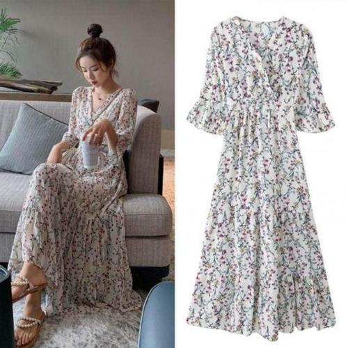 여름 여성 롱 반팔 플라워 바캉스 휴양지 쉬폰 원피스