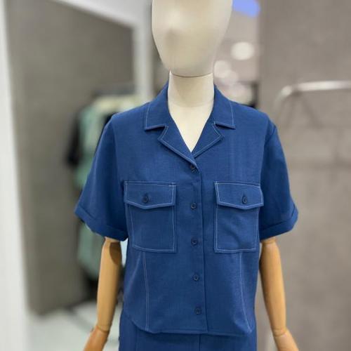 [꼼빠니아]오픈카라 스티치 숏 블라우스 CADU5-WRB100