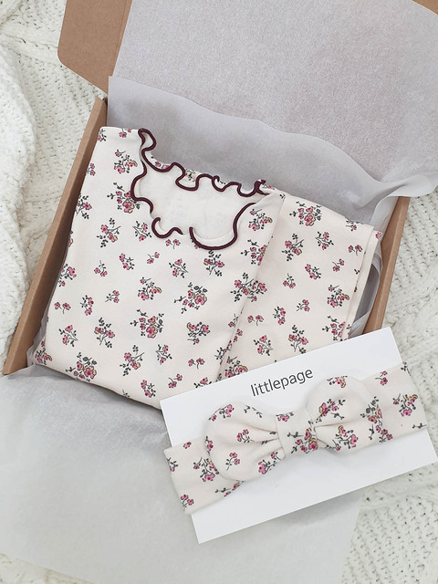 [리틀콩] [선물포장] 헤어밴드+팝콘꽃 슈트실내복_2color