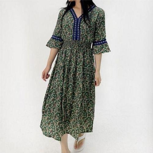 [에이치플러스몰]랩 인기 꽃무늬 원피스 브이넥 감성 반팔 에스닉 미디