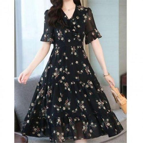 [에이치플러스몰]키밍 여름 쉬폰 꽃무늬 원피스 반팔 롱 여성 치마