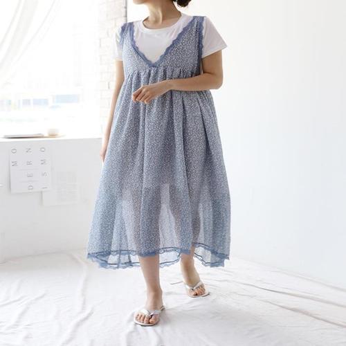 [하프클럽/]여성 원피스 여름 레이어드 레이스 반팔 나시 꽃무늬