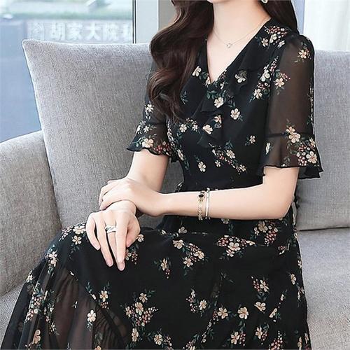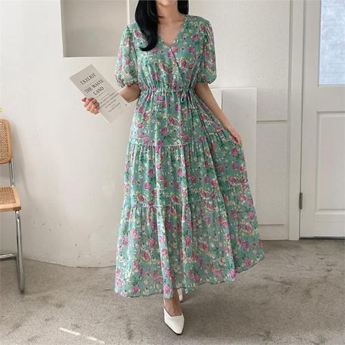 [다잇템]여자 V넥 꽃무늬 시폰 플라워패턴 롱 원피스 (10640248B)