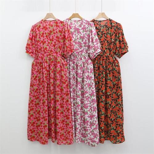 [서울양말]여름 촌캉스 꽃 주름 플리츠 빅사이즈 반팔 꽃무늬 원피스