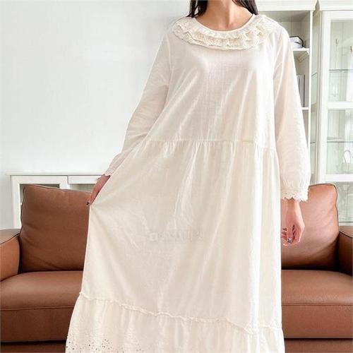 [다잇템]여자 펀칭 프릴 실내복 꽃무늬 레이스 롱원피스 (9113204A)