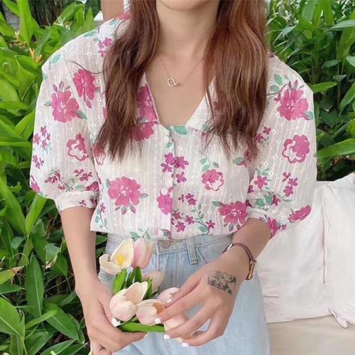 [다잇템]여자 벌룬 꽃무늬 SS 반소매 빅사이즈 블라우스 (10400330A)