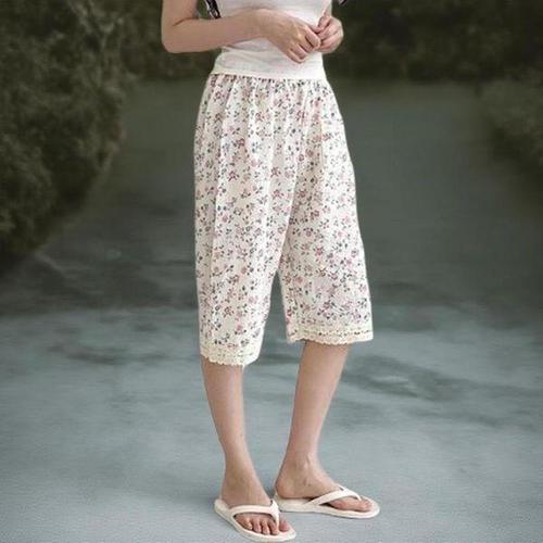 [신상오픈런]여성용 여름 잠옷 바지 꽃무늬 5부 밴딩 팬츠