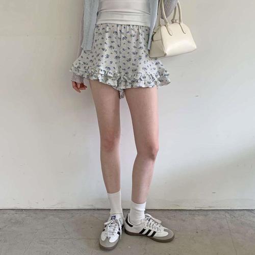[옷자락]여성 러블리 캉캉 프릴 꽃무늬 밴딩 숏 팬츠