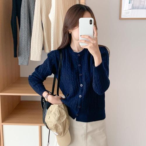 [신상오픈런]여성 데일리 꽈배기 라운드넥 가디건 여리핏