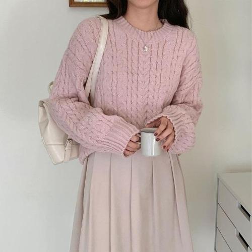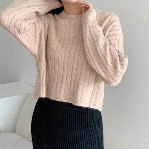 cammello 루즈핏 케이블 크롭 니트 베이직 긴팔 스웨터