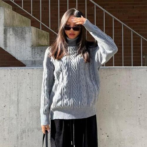 [옷자락][다잇템] 여성 폴라넥 꽈배기 그런지 롱슬리브 빅사이즈 니트_23652962_588870