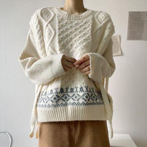 [신상오픈런]여성 노르딕 배색 라운드 니트 조끼 꽈배기 디자인