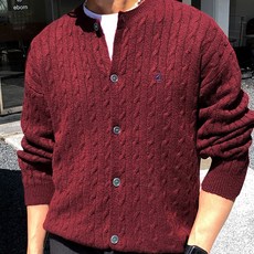 HANYO 남성 고퀄리티 빅사이즈 오버핏 라운드넥 꽈배기 니트 스웨터 가디건