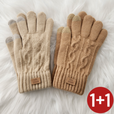 데이그린 커플 니트 꽈배기 터치 장갑 1+1