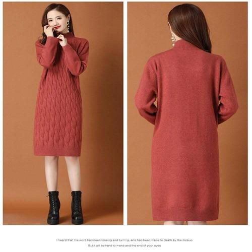 [다잇템]여자 스웨터 꽈배기 롱니트 폴라넥 중간 원피스