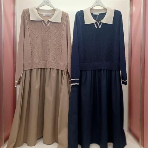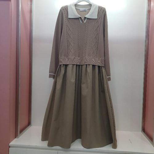 [라티움]Latium HC06 깔끔한 꽈배기 카라니트 플레어 플리츠 세미 정장 롱원피스 T2541op01N (42230903)