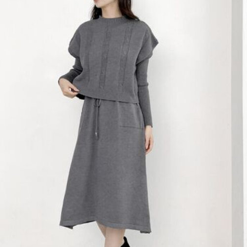 에르디테 / 니트 셋업 미디 롱 원피스+꽈배기 조끼 베스트 레이어드 코디 2컬러