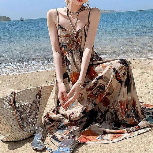 [에이치플러스몰]바캉스 롱원피스 끈나시 원피스 여자 비치룩 휴가룩