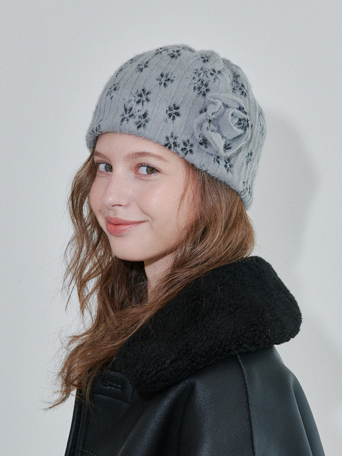 [오앨] 로즈 코사지 니트 비니