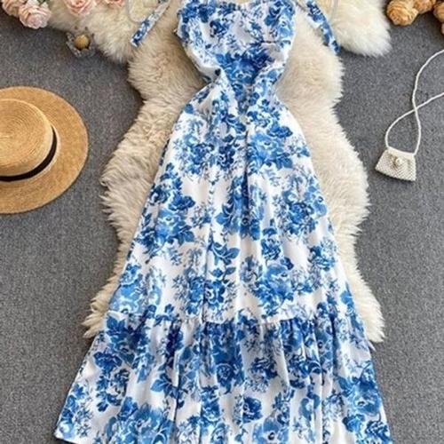[엄지척]롱원피스 캉캉 프린팅 치마 끈나시 ST020 원피스_19873234_667501