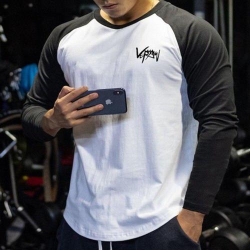 남성 긴팔 머슬핏 나그랑 배색 티셔츠 4컬러 짐웨어 면소재 WFLLZUC