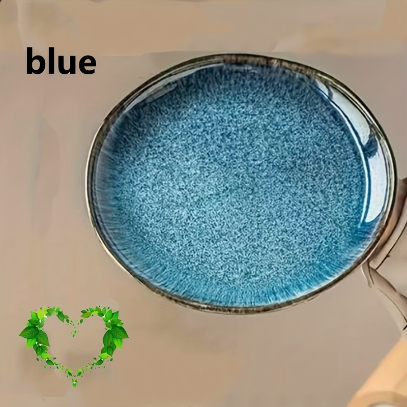 TEMU 사계절 사용 가능 - 운몽 불규칙 접시 - 블루 & 플레임 세라믹 레트로 디자인, 파스타 샐러드 과일 접시에 완벽, 패셔너블한 식기, 제작 도자기, 그라데이션 불규칙 세라믹 접시, 스테이크 접시, 레스토랑 파스타 접시