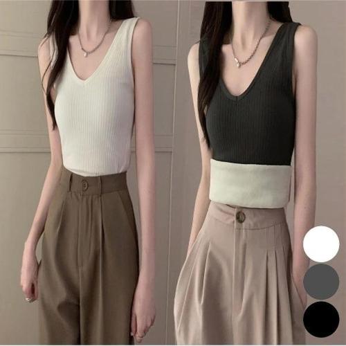 [엄지척]여성 겨울 V넥 보온나시 이너 민소매 골지 퍼 내의_19599007_667501