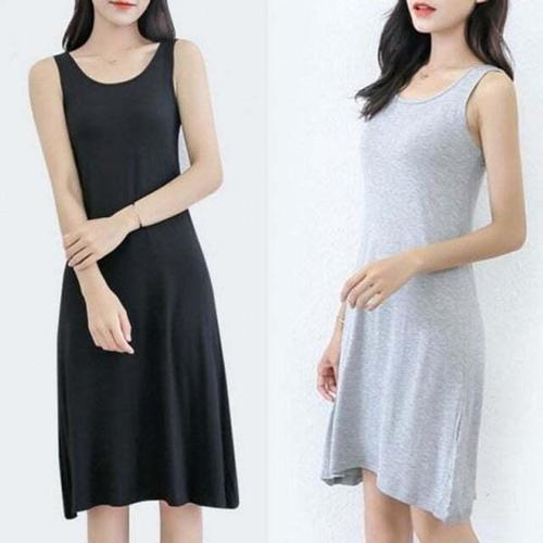여성 모달 홈웨어 통기성 반팔 민소매 원피스 3가지 길이 색상 선택