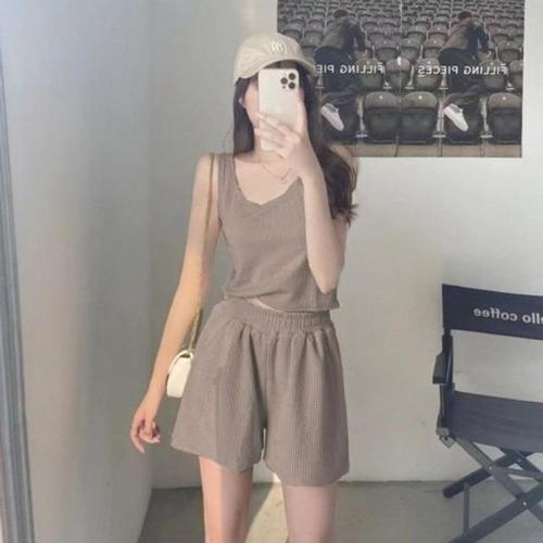여성 여름 일상용 세트 삼피스 나시 블라우스 반바지
