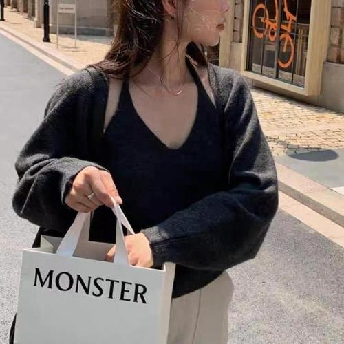 [다잇템][다잇템] 여자 슬리브리스 홀터네크 카디건 스웨터 숏가디건 키치무드 세트_23200303_588872
