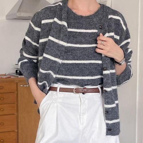 [다잇템_패션]여자 U넥 줄무늬 니트나시 카디건 FW 세트