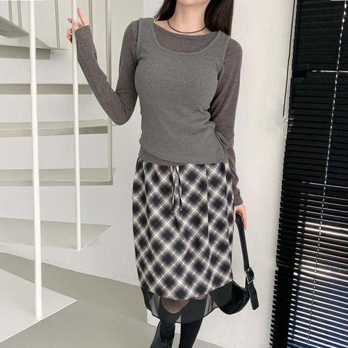 [다잇템_패션]여성 롱 나시와 티 세트 치마 콘트라스트 포함