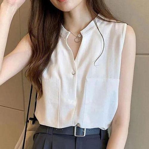 [셀러허브_여성트랜드패션]ONM 여성 얇은 민소매 셔츠 여유핏 정장셔츠 데일리