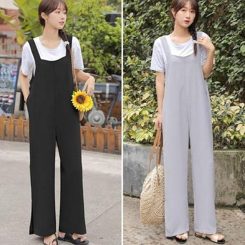 [유야]끈 나시 와이드 배기 점프수트 멜빵 점프슈트 -JS0028H- 빅사이즈 루즈핏 여성 가을