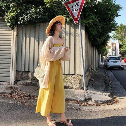 여성 쿨 린넨 뷔스티에 7부 민소매 멜빵 와이드 점프슈트