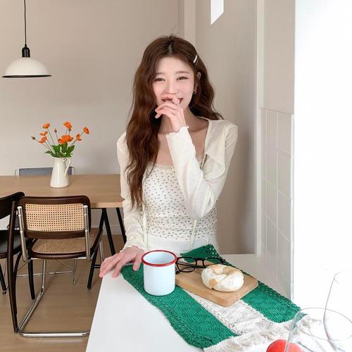 |CHD28FF|여성용 봄 여름 에어리 면 크롭 나시와 가디건 세트