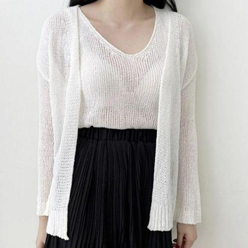 [에이치플러스몰]여름철슬리브리스 가디건세트 스타일