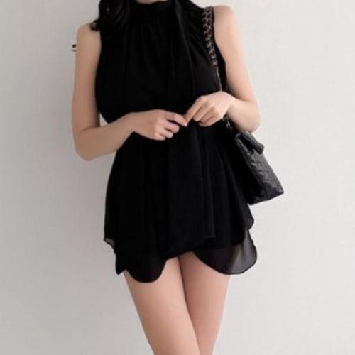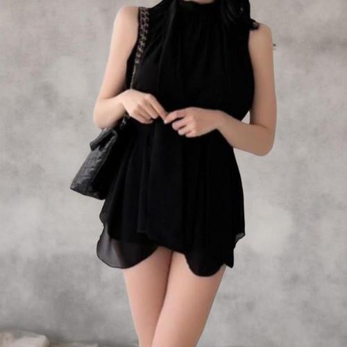 [신상오픈런]여성 민소매 쉬폰 블라우스 홀터넥 허리 스트랩 디자인