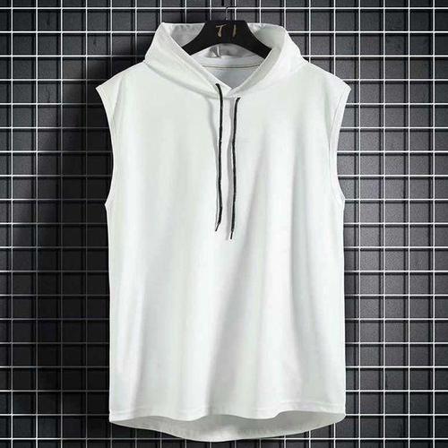 해피유통 남성 운동 캐주얼 민소매 조끼 가볍고 지퍼 디자인 후드 포함