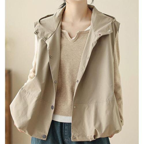 [패션시그널]후드 스냅버튼 민소매 조끼점퍼 A19525