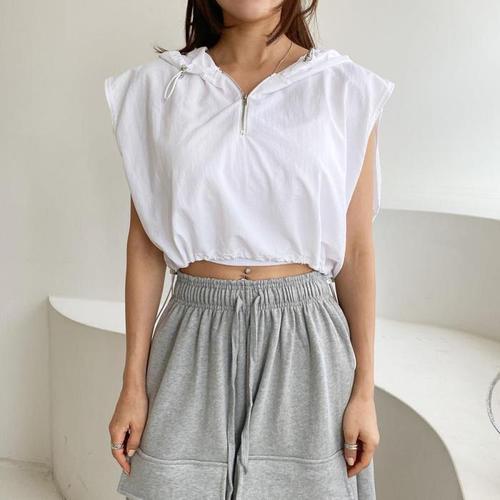 [다잇템]여자 후디 밑단 슬리브리스 드로우코드 반집업 (10437003A)