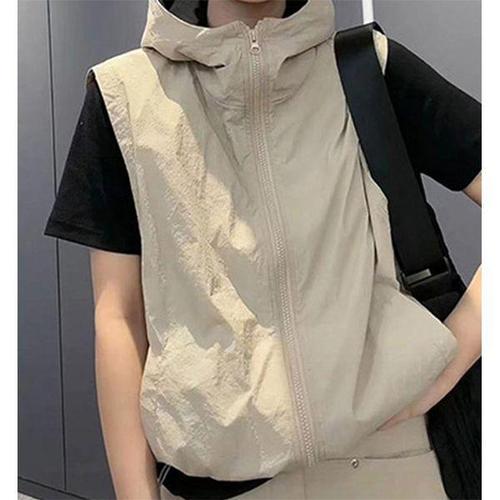 [에이치플러스몰]냉감 후드 소재 스타일 민소매 쿨원단 캐주얼