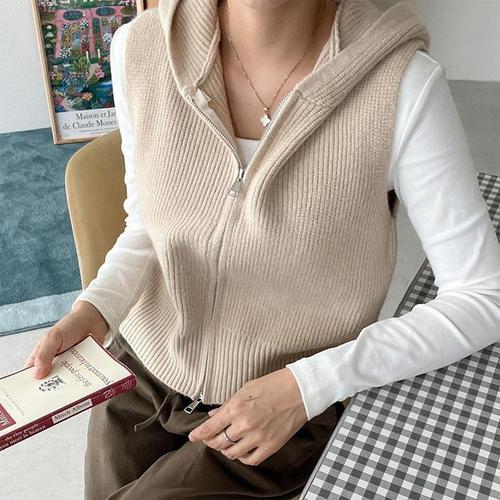 [다잇템]여자 환절기 후디집업 슬리브리스 스웨터 조끼 (10979343A)