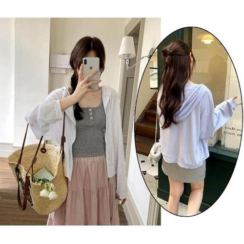 [엄지척]봄 여름 얇은 여성 나시레이어드 여리여리 후드 집업_20294551_667501