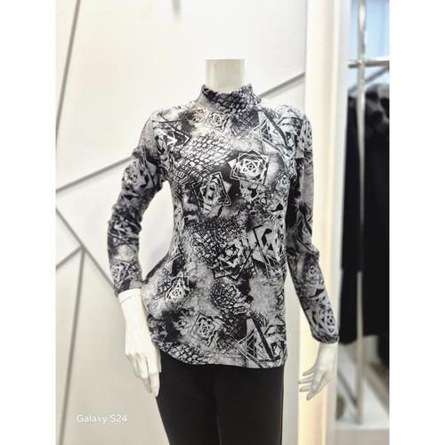 [쉐르담]쉐르담 세이브존01 블랙 나염 하이넥 블라우스 CI4-653BL(GR) (45037592)