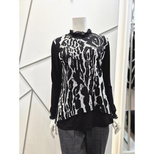 [쉐르담]쉐르담 세이브존01 블랙 나염 하이넥 블라우스 CI4-653BL (44369809)