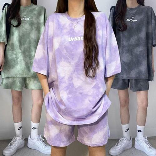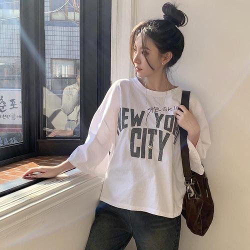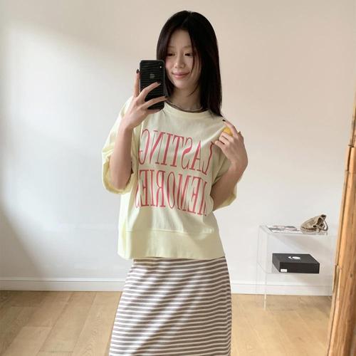 [다잇템]여성 캐쥬얼 나염 반소매 글자 코지 티셔츠