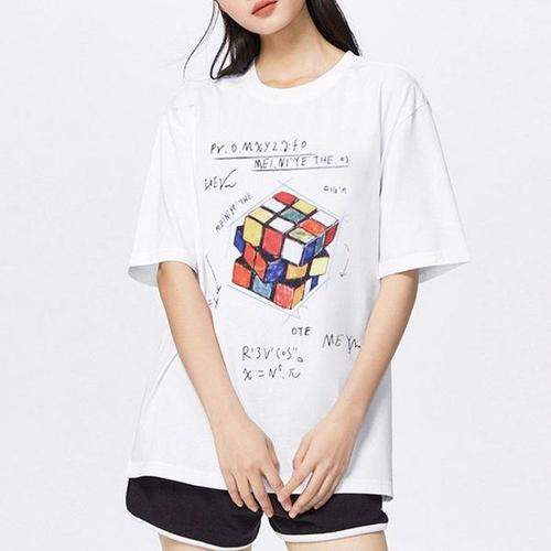 [에이치플러스몰]나염티셔츠 프린트티셔츠 큐브 프린트반팔 컬러