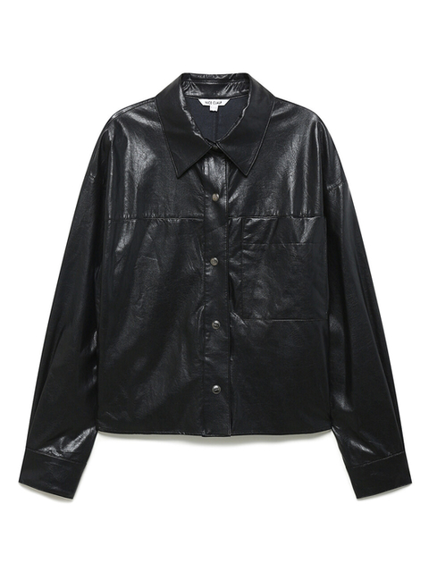 트렌디한 럭셔리 프렌치 틈새 클래식 실루엣 라펠 PU 질감 광택 가죽 재킷 짧은 재킷 탑